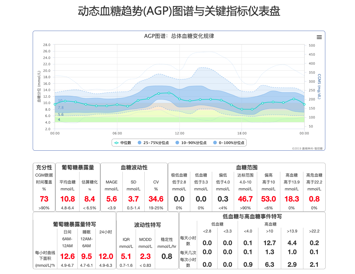 - 空腹血糖、餐后血糖、夜间血糖全天达标TIR